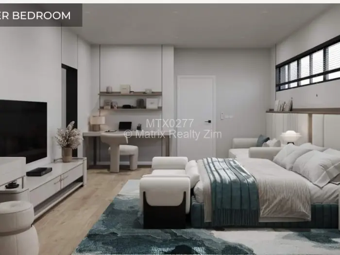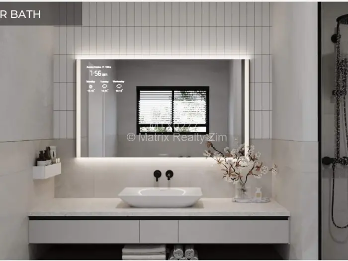 - Solar inverter system, borehole water, high-end finishes, modern architectural details, 24hour security.